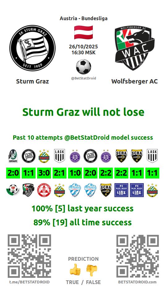✔ Штурм пропускает меньше 2,5 голов в 15 матчах