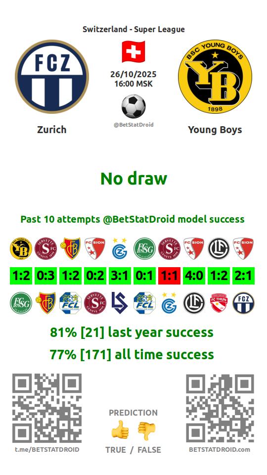✔ Янг Бойз забивает меньше 2,5 голов в 19 матчах