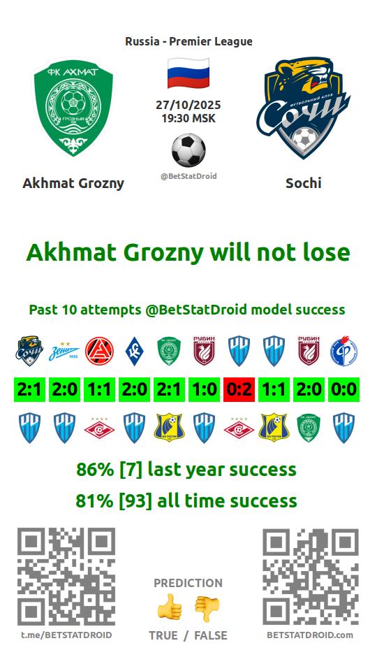 ✔ Ахмат забивает меньше 1,5 голов в 5 матчах