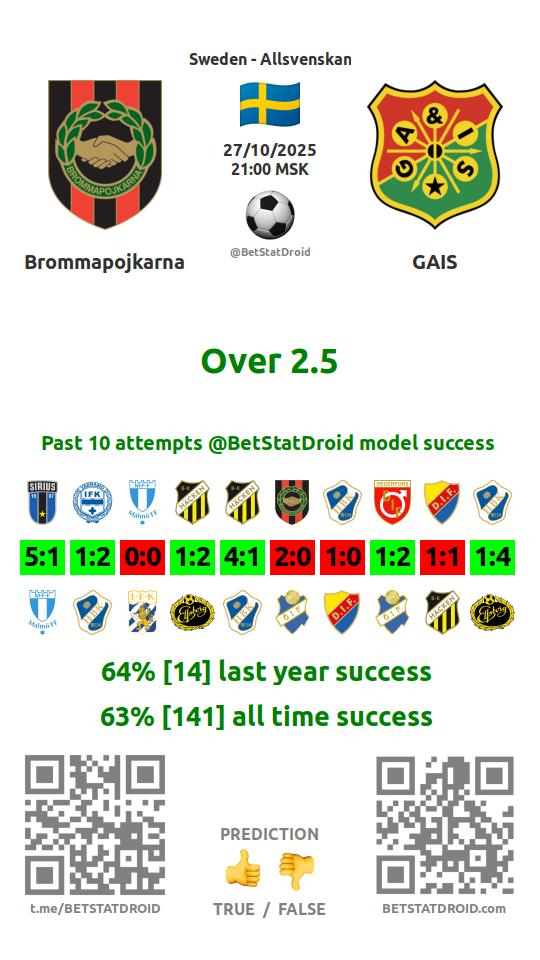 ✔ Броммапойкарна забивает меньше 1,5 голов в 5 матчах