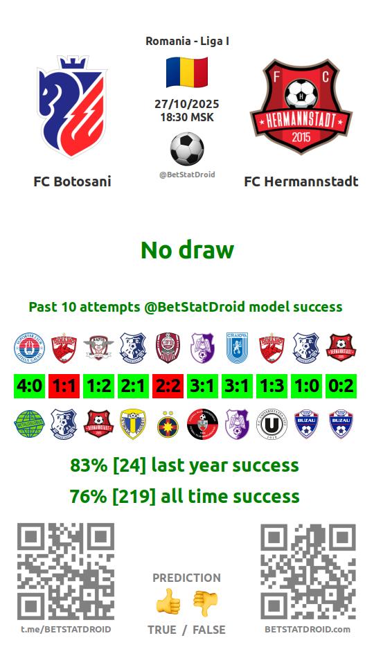✔ Ботошани пропускает меньше 2,5 голов в 10 матчах