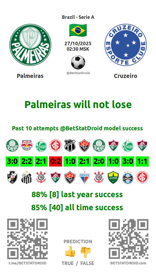 ✔ Палмейрас забивает больше 2,5 голов в 6 матчах