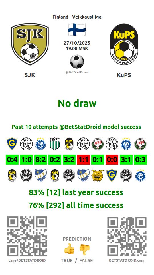 ✔ КуПС забивает меньше 1,5 голов в 6 матчах
