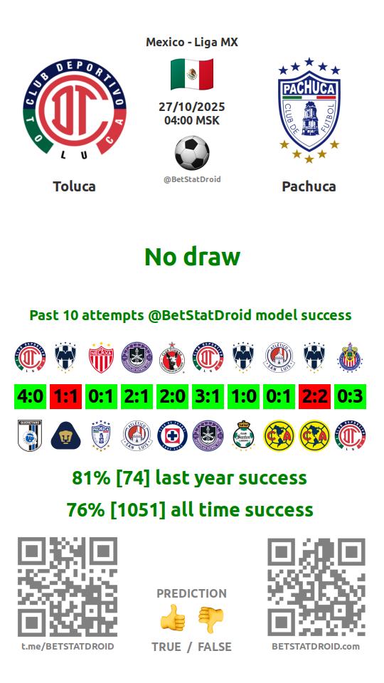 ✔ Толука забивает больше 2,5 голов в 4 матчах