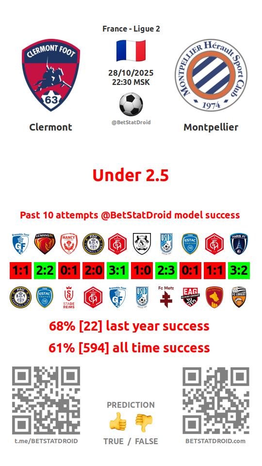 ✔ Клермон пропускает меньше 2,5 голов в 55 матчах
