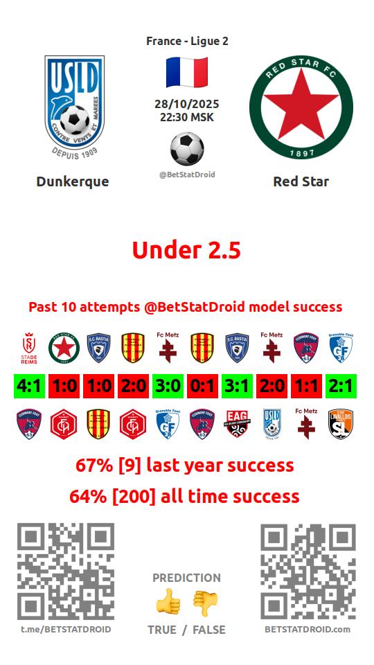 ✔ Дюнкерк пропускает меньше 2,5 голов в 8 матчах