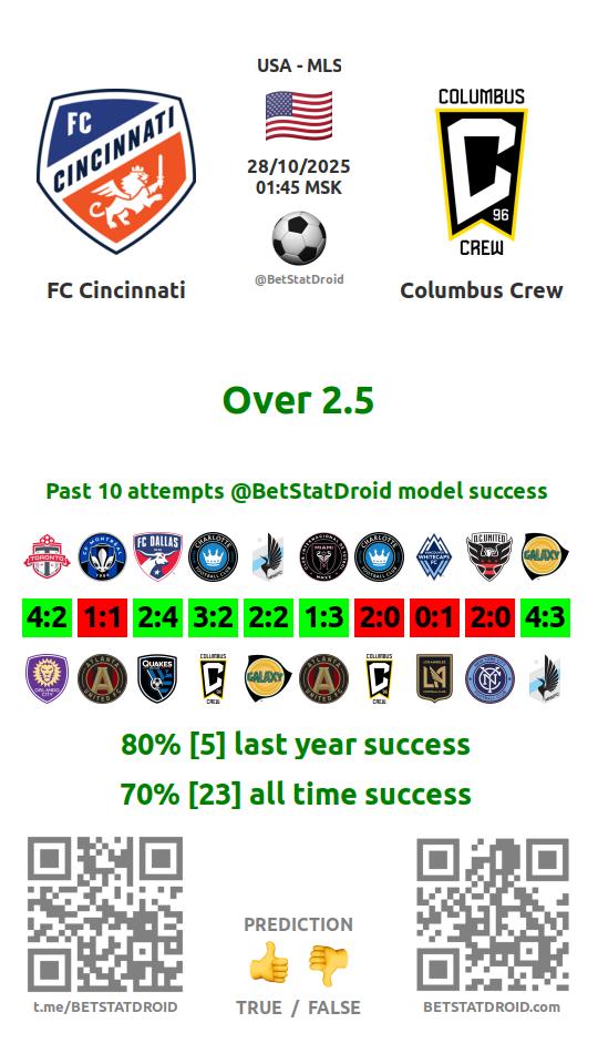 ✔ Цинциннати пропускает меньше 1,5 голов в 7 матчах