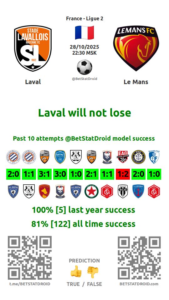 ✔ Лаваль забивает меньше 2,5 голов в 11 матчах