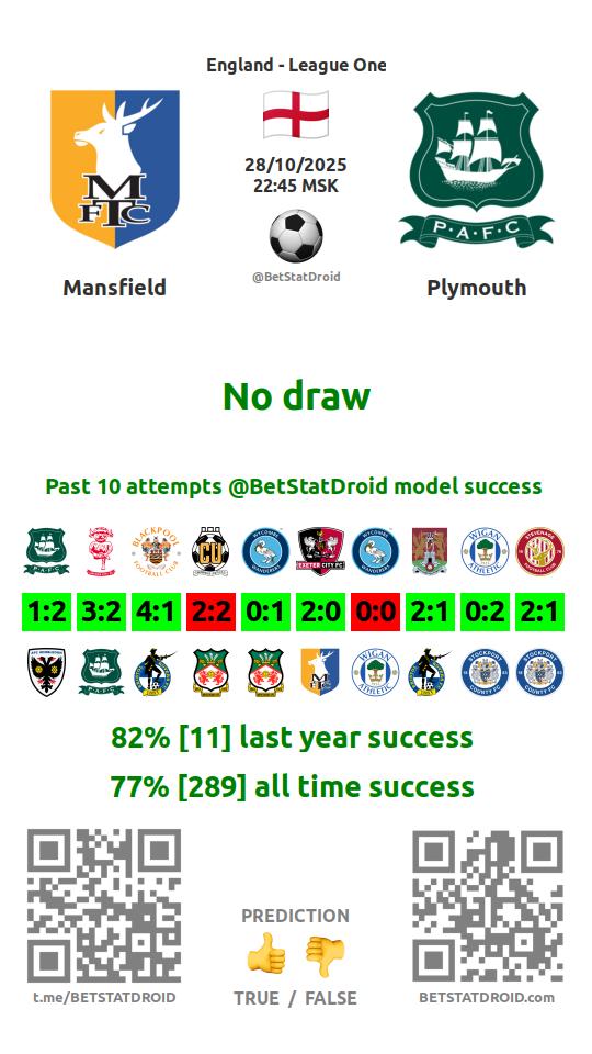 ✔ Мэнсфилд забивает меньше 2,5 голов в 8 матчах