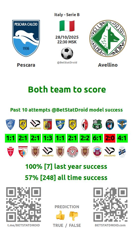 ✔ Пескара забивает больше 1,5 голов в 5 матчах