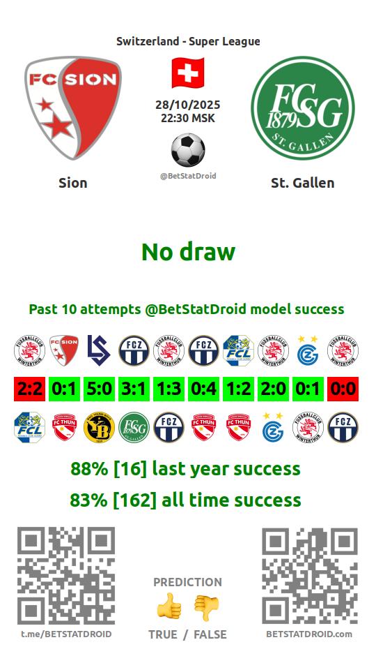 ✔ Санкт-Галлен не играет вничью в 12 матчах