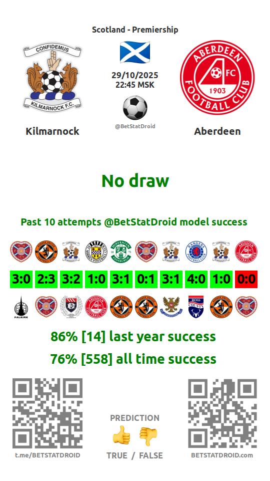 ✔ Килмарнок забивает меньше 2,5 голов в 11 матчах