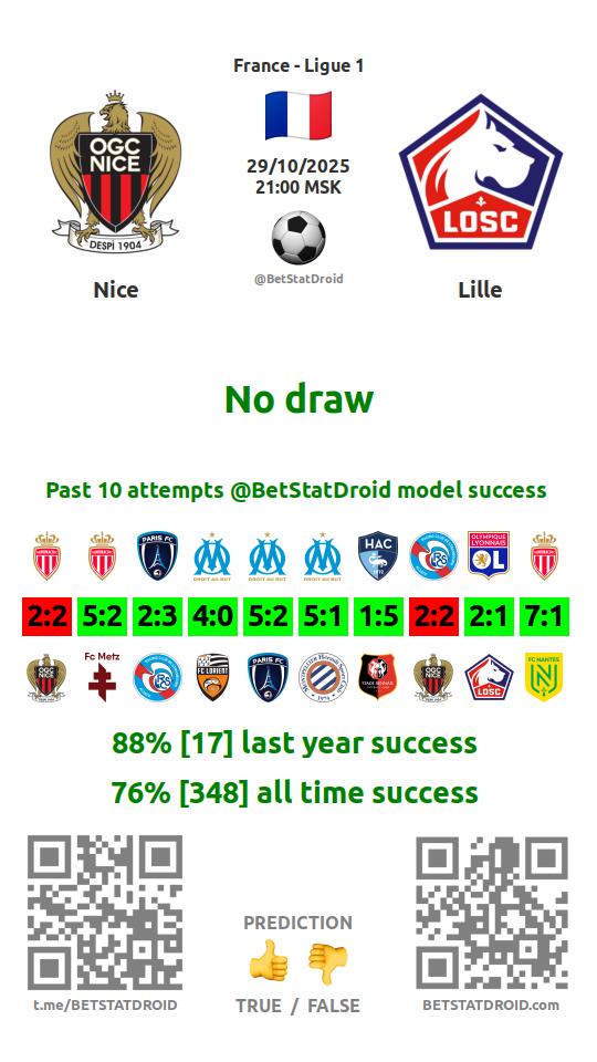 ✔ Ницца забивает меньше 2,5 голов в 26 матчах