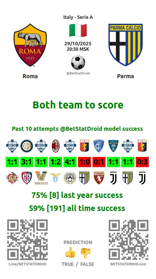 ✔ Парма забивает меньше 2,5 голов в 25 матчах