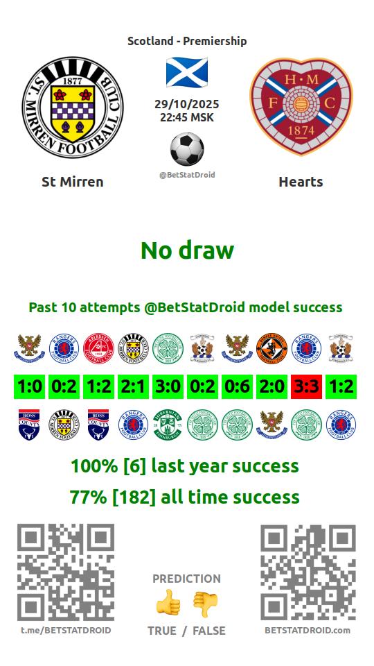 ✔ Сент-Миррен забивает меньше 2,5 голов в 24 матчах