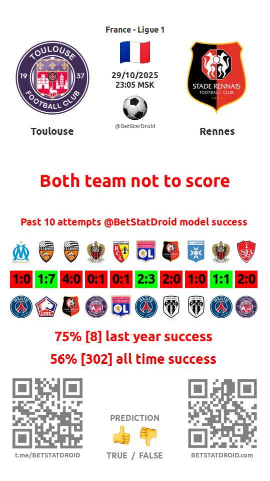 ✔ Ренн забивает меньше 2,5 голов в 9 матчах