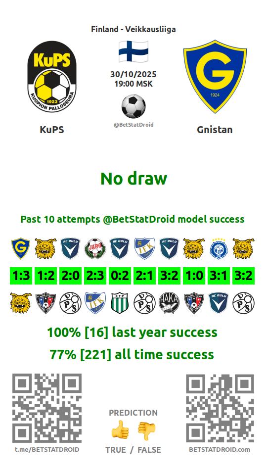 ✔ КуПС забивает больше 1,5 голов в 7 матчах