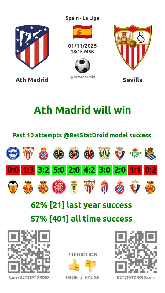 ✔ Севилья забивает меньше 2,5 голов в 12 матчах