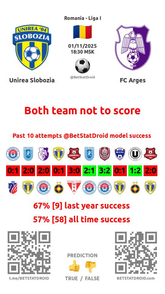 ✔ Униря Слобозия забивает меньше 1,5 голов в 5 матчах
