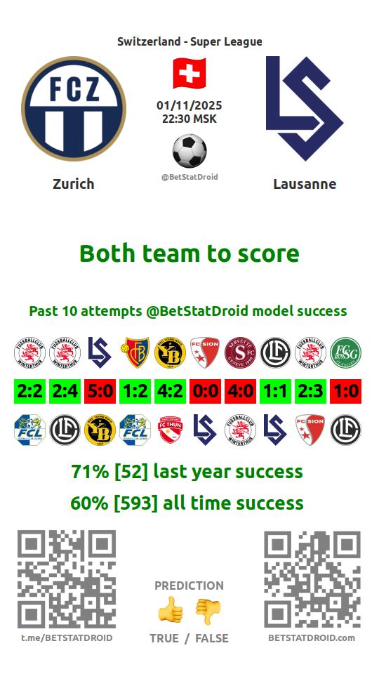 ✔ Лозанна забивает в 4 матчах