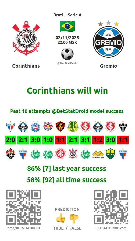 ✔ Коринтианс пропускает меньше 2,5 голов в 34 матчах