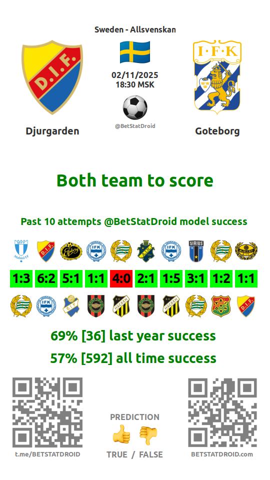 ✔ Гетеборг забивает меньше 2,5 голов в 13 матчах