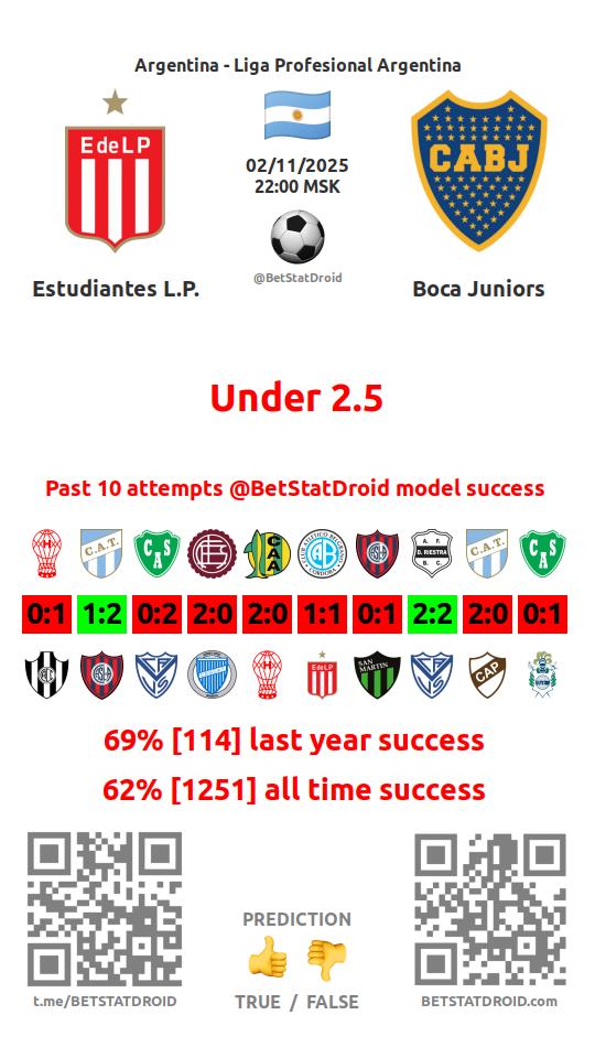 ✔ Эстудиантес забивает меньше 2,5 голов в 23 матчах
