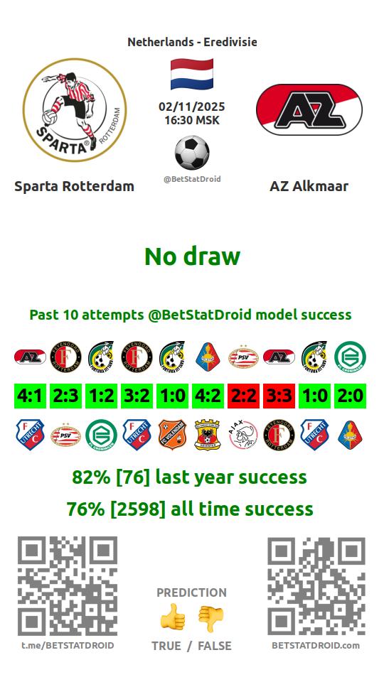 ✔ АЗ Алкмар пропускает меньше 2,5 голов в 8 матчах