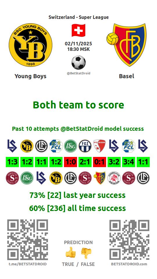 ✔ Янг Бойз забивает больше 1,5 голов в 7 матчах