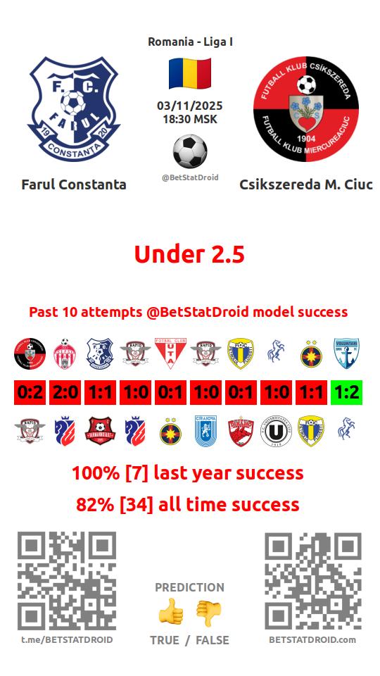 ✔ Фарул пропускает меньше 2,5 голов в 12 матчах