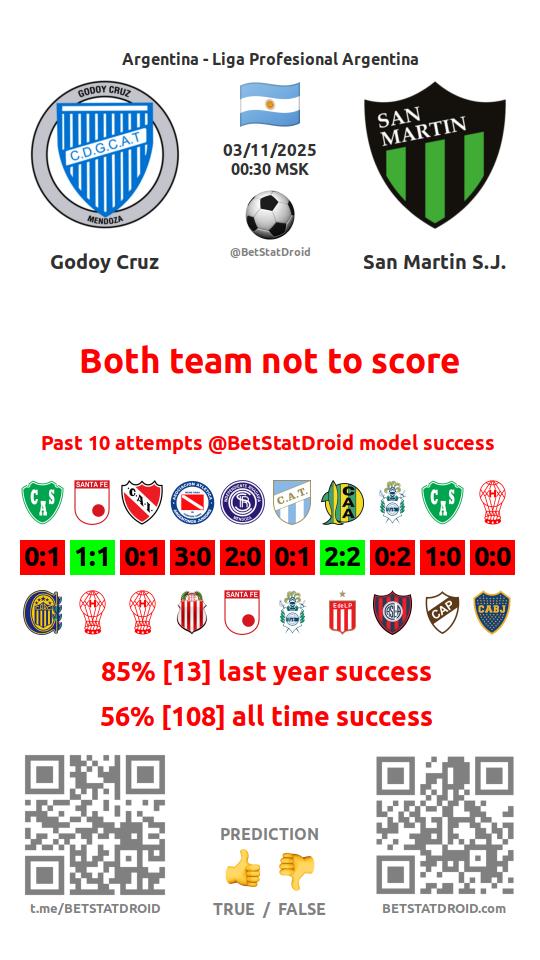 ✔ Сан-Мартин Сан-Хуан не забивает в 3 матчах