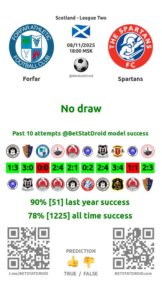 ✔ Форфар Атлетик забивает меньше 2,5 голов в 8 матчах