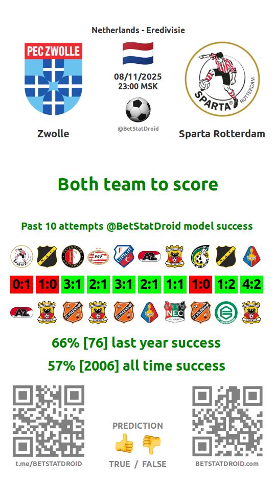 ✔ Зволле забивает меньше 2,5 голов в 11 матчах