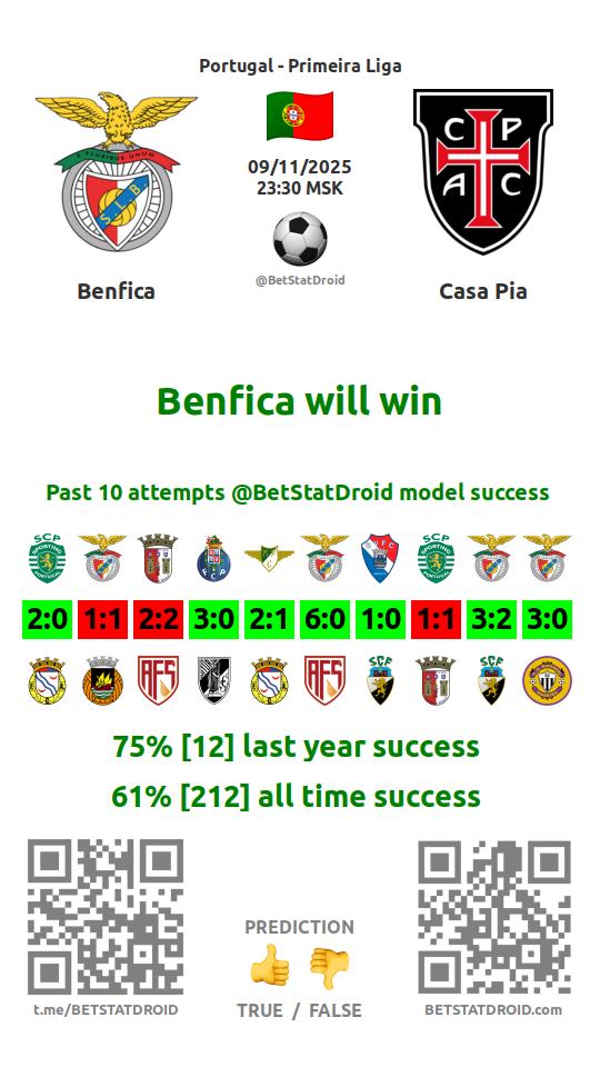 ✔ Бенфика пропускает меньше 2,5 голов в 67 матчах