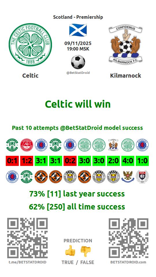 ✔ Килмарнок забивает меньше 1,5 голов в 19 матчах