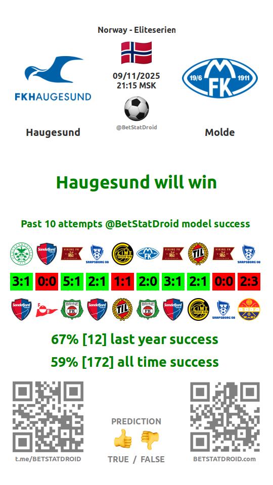 ✔ Хаугесунн забивает меньше 2,5 голов в 8 матчах
