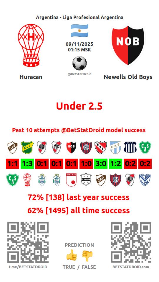 ✔ Ньюэллс Олд Бойз забивает меньше 2,5 голов в 30 матчах