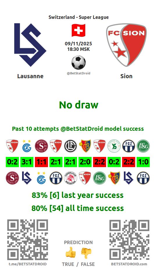 ✔ Лозанна забивает меньше 2,5 голов в 11 матчах