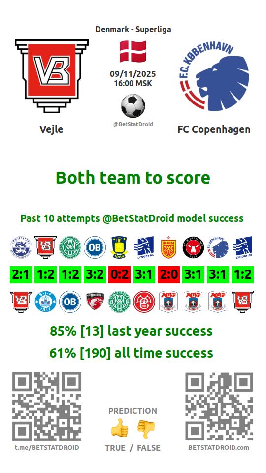 ✔ Копенгаген забивает больше 1,5 голов в 11 матчах