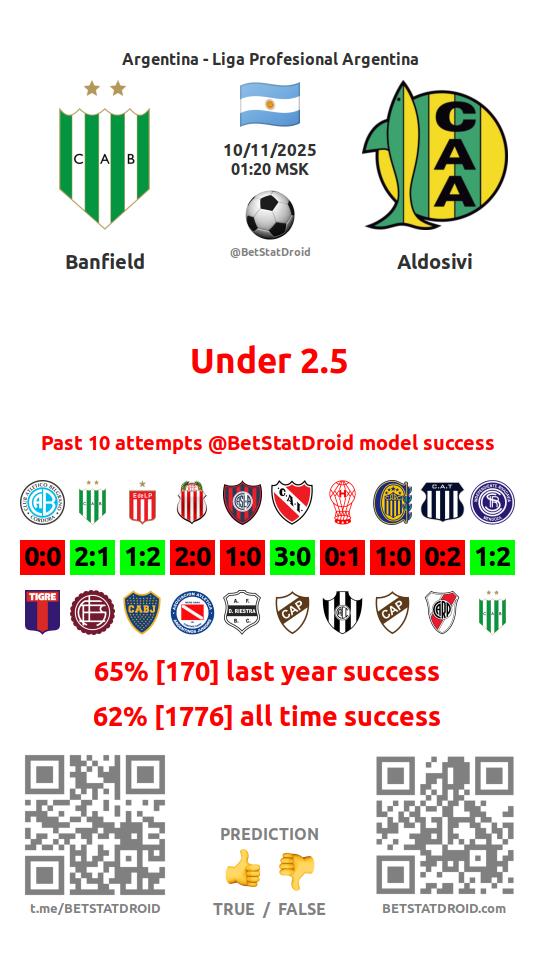 ✔ Банфилд забивает меньше 2,5 голов в 9 матчах