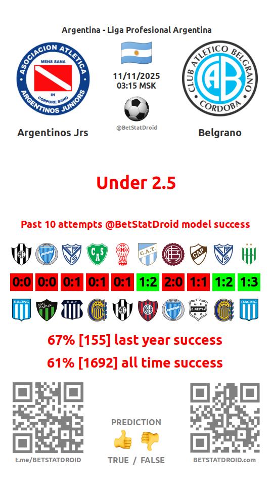 ✔ Бельграно пропускает меньше 2,5 голов в 11 матчах