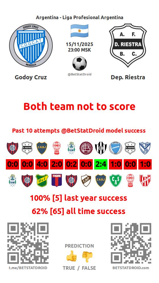 ✔ Годой Крус забивает меньше 2,5 голов в 15 матчах