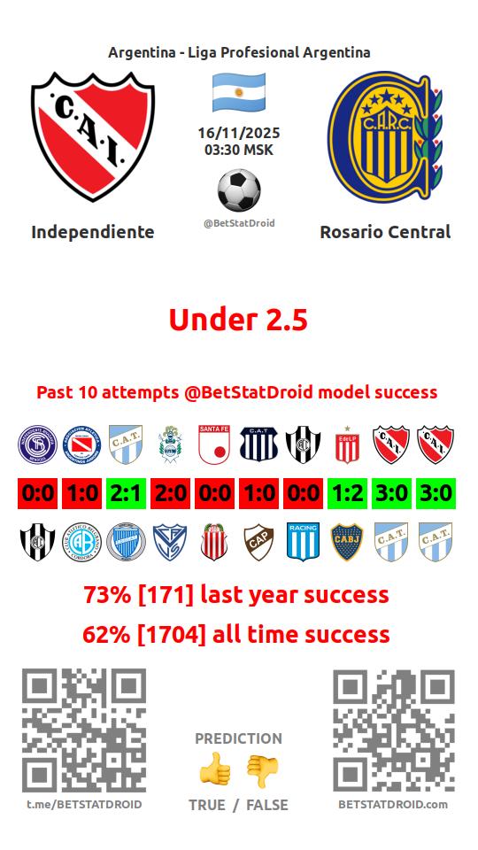 ✔ Росарио Сентраль пропускает меньше 2,5 голов в 34 матчах