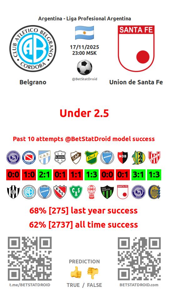 ✔ Унион Санта-Фе забивает меньше 2,5 голов в 11 матчах