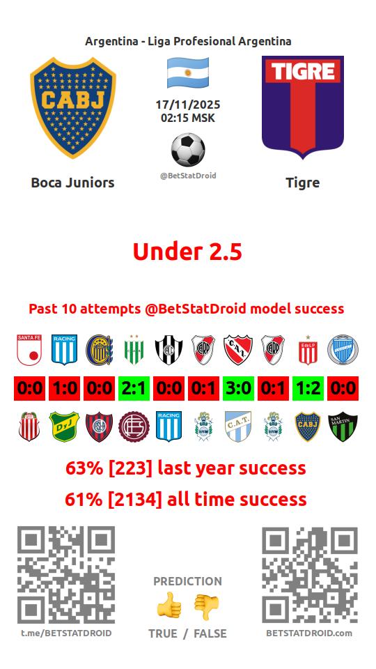 ✔ Бока Хуниорс пропускает меньше 2,5 голов в 53 матчах