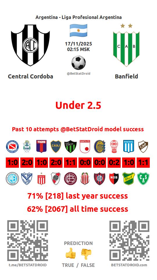 ✔ Сентраль Кордоба пропускает меньше 2,5 голов в 15 матчах