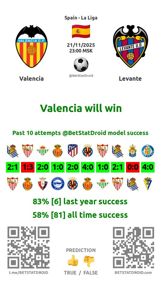 ✔ Валенсия забивает меньше 2,5 голов в 9 матчах