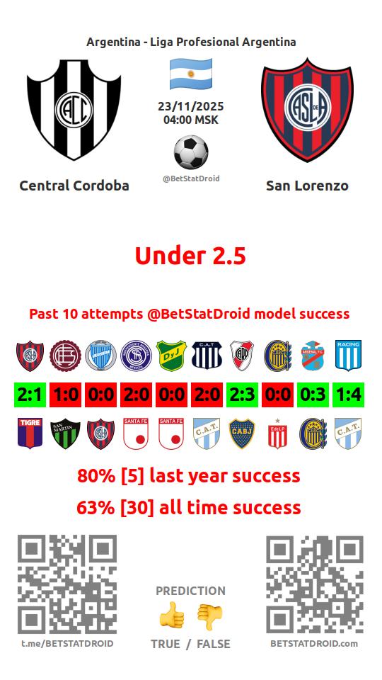✔ Сентраль Кордоба пропускает меньше 2,5 голов в 17 матчах