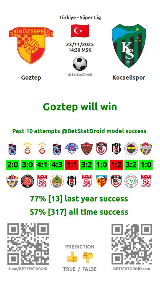 ✔ Гезтепе пропускает меньше 2,5 голов в 24 матчах