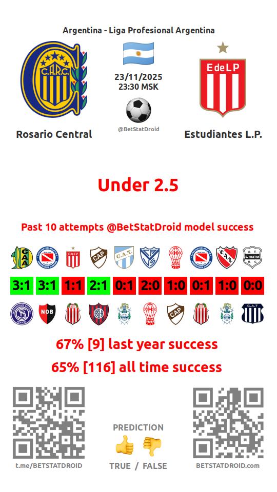 ✔ Росарио Сентраль пропускает меньше 2,5 голов в 46 матчах